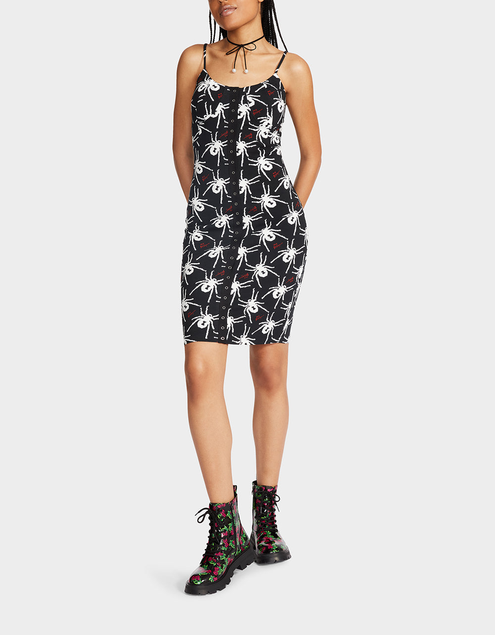 80TH BASH SNAP FRONT SLIP DRESS BLACK/WHITE | RE:LUV