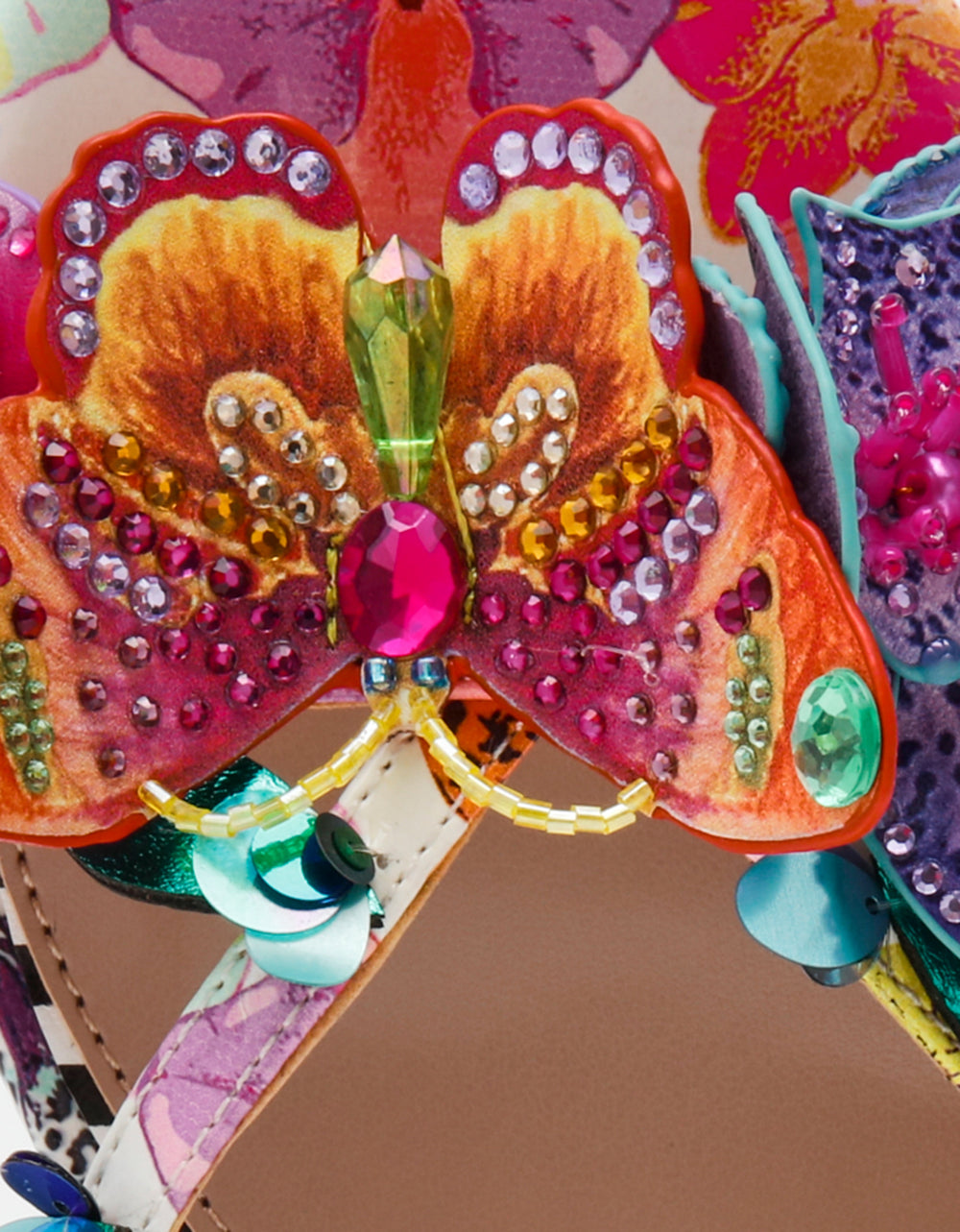 Step into whimsy with the BEATRIZ WHITE MULTI kitten heel dress sandal—a playful take on everyday elegance. Adorable 3D flowers and butterflies dance across the upper, while shimmering rhinestones catch the light with every step. The modest kitten heel keeps you comfortable without sacrificing style, making this sandal perfect for adding a touch of enchantment to dresses, skirts, or special occasions. Because life’s too short for boring shoes.