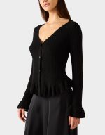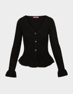 Wrap yourself in effortless charm with the BELLE CARDIGAN BLACK. This cozy long-sleeve sweater features a flattering V neckline and playful ruffle sleeve details that add a touch of whimsy to any outfit. The classic button-down design makes layering a breeze, whether you’re dressing up or keeping it casual. Perfect for those moments when you want comfort without compromising on style.