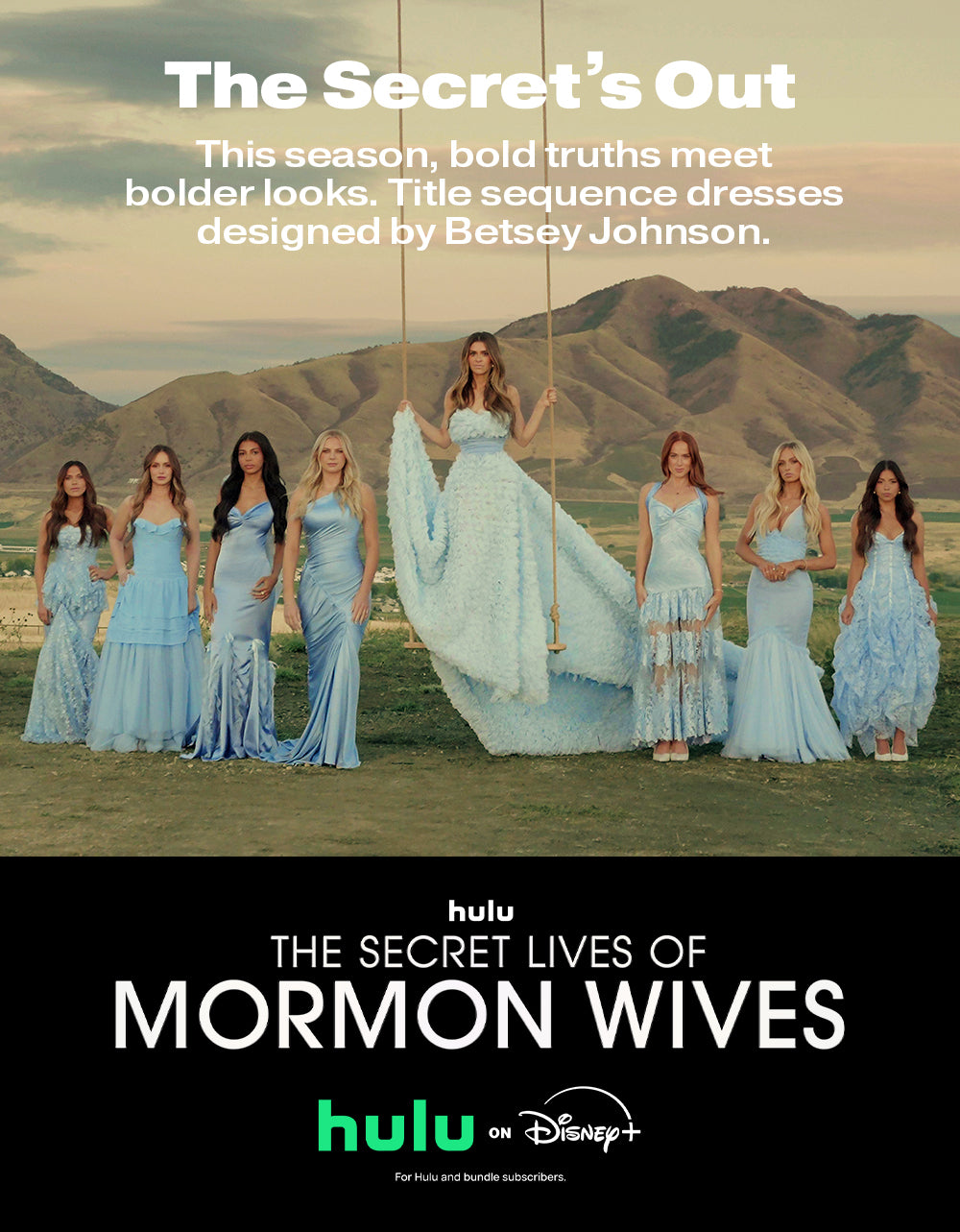 Inspired by the custom dresses designed for the title sequence of The Secret Lives of Mormon Wives, streaming on Hulu starting March 12th. The BLUE COVENANT GOWN LIGHT BLUE translates milestone glamour into a wearable silhouette rooted in movement and modern femininity.