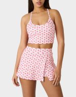 Cute cherry gingham print meets sporty style in this racerback top. The relaxed fit and breathable fabric make it ideal for workouts, weekend errands, or cozy nights in. Layer it or wear it solo—this versatile piece transitions seamlessly from gym to brunch. Perfect for anyone who refuses to choose between comfort and looking fabulous.