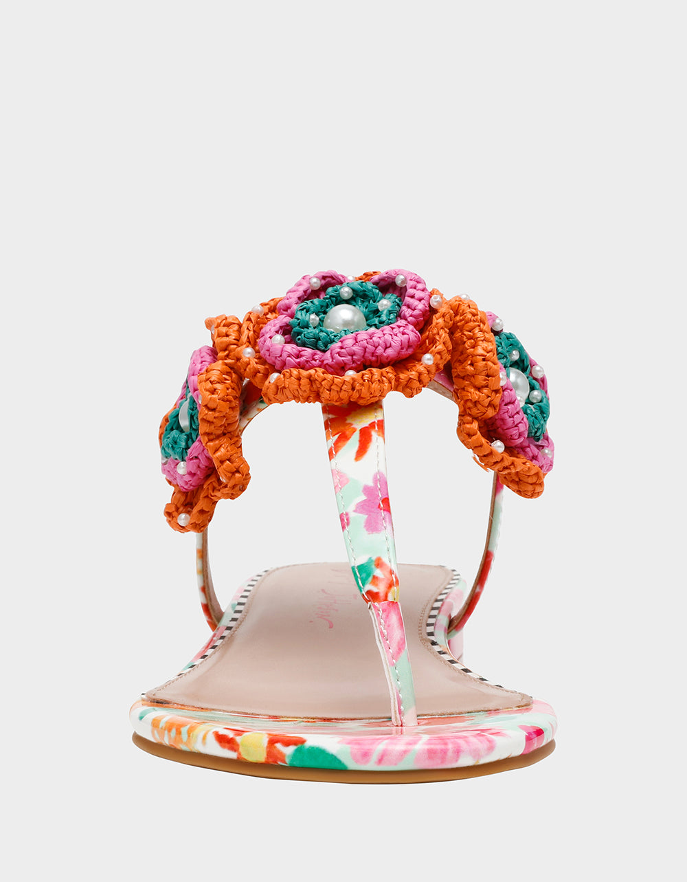 for an effortless look! The macrame flowers cascade across the front with a study buckle keeping your foot in place.