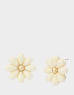 featuring neutral ivory daisy perfect for everyday. Earrings have a post back closure. Made from resin and metal.