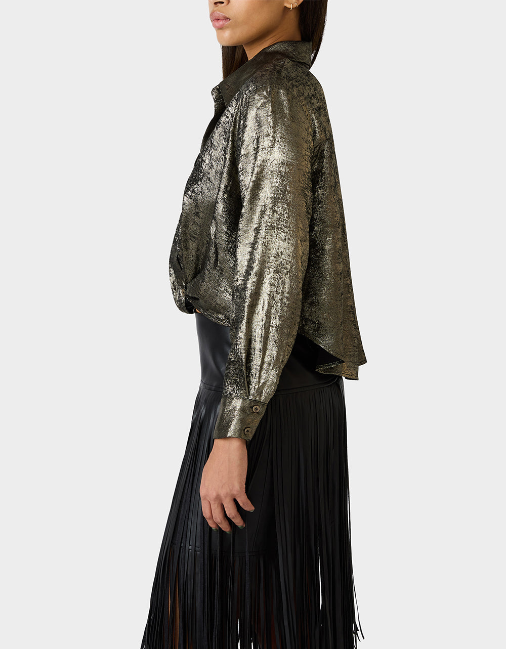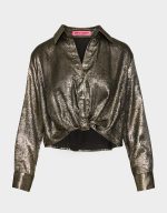 Elevate your everyday style with this stunning Gold Rush Top in black gold. Featuring a luxe brushed finish and long sleeves with button-down styling, this piece delivers instant glamour to any outfit. The shimmering gold accents catch the light beautifully, making it the perfect choice when you want to add a touch of sparkle and sophistication to your wardrobe. Dress it up or down—this versatile top is your new go-to for turning heads.