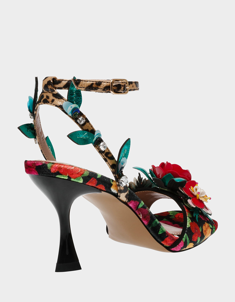 . Featuring a stunning floral design, these heels add a touch of whimsy to any outfit. Perfect for a playful day out or a night on the town.