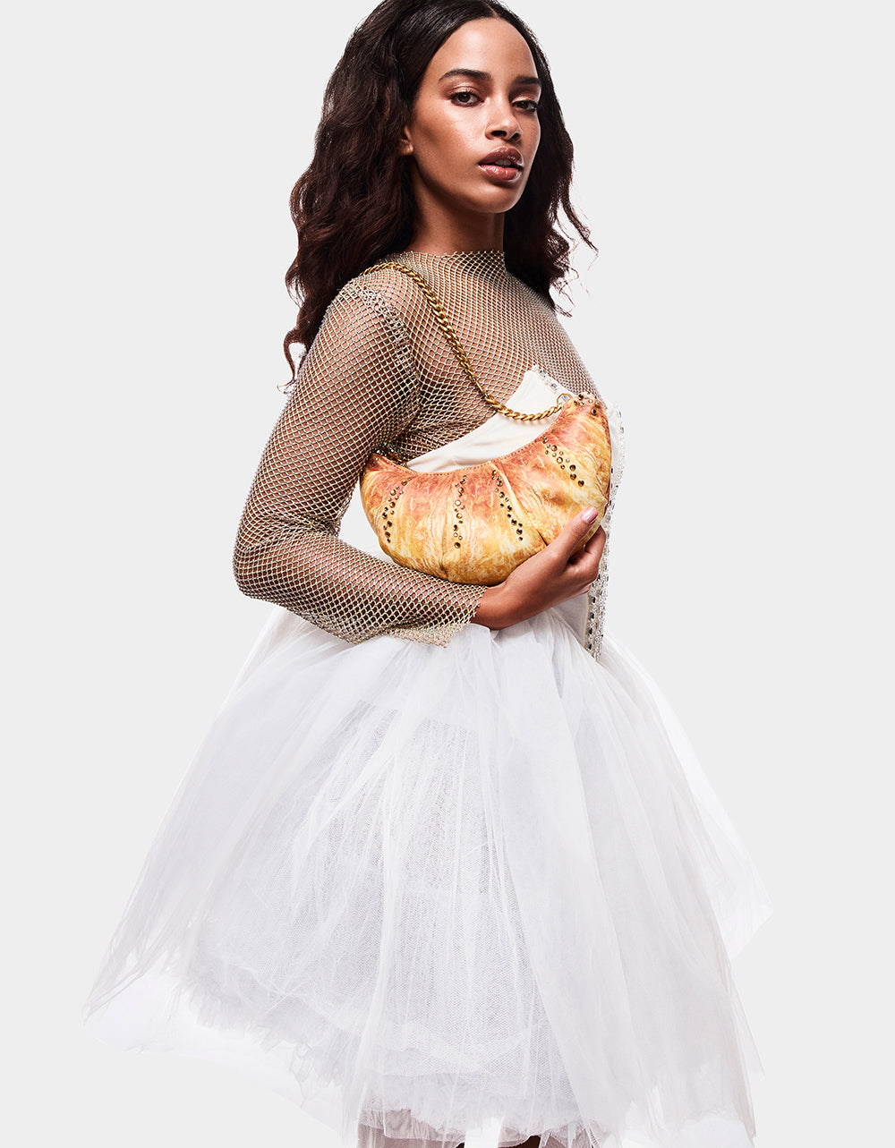 bag features a mouth-watering photo-real lining and a buttery smooth zipper puller for easy access to your essentials. Sparkling rhinestones add just the right amount of glam, while the chain strap gives it an effortlessly chic vibe. Perfect for adding a fun, stylish twist to any outfit!
