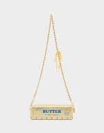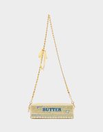. This quirky butter-shaped bag features a convenient crossbody chain strap and sparkling rhinestone stud embellishments, perfect for playful fashionistas on the go!
