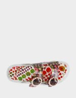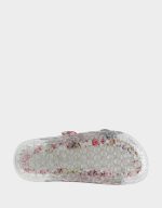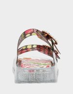 . This bold, colorful style features a translucent jelly upper in vibrant red with playful multi-colored accents that catch the light with every step. The sturdy flatform sole keeps you comfortable and grounded while the eye-catching design makes a statement. Perfect for adding a pop of personality to any warm-weather look, these sandals are all about embracing your fun side.