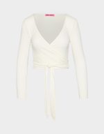 LONG SLEEVE V NECK WRAP TOP WHITE