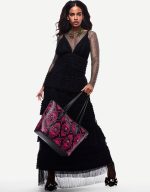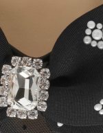 features a unique rhinestone bow detail, adding a touch of edgy playfulness. Completed with a secure ankle strap, these heels will elevate any outfit while keeping you comfortable.