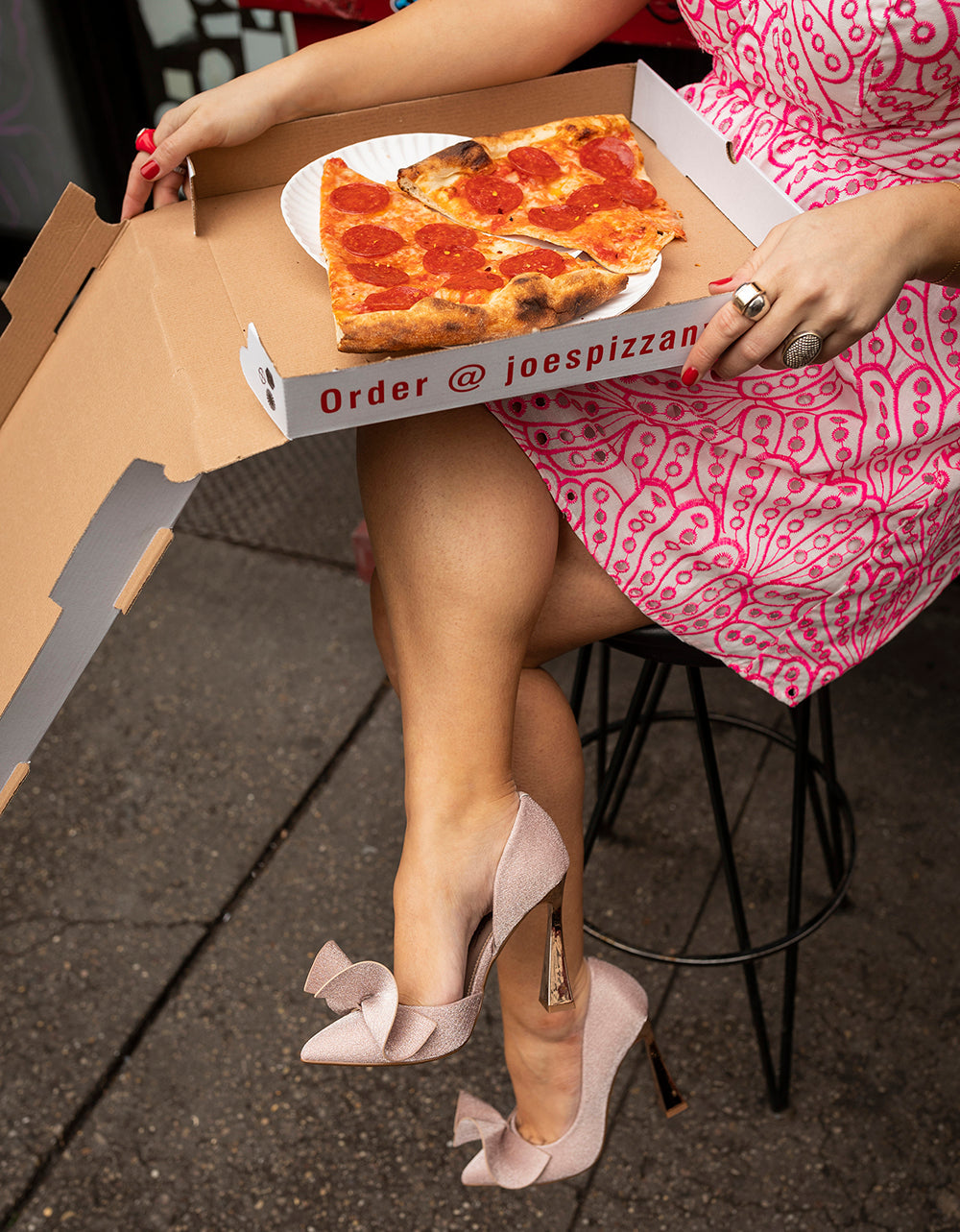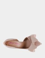 with a charming bow detail. Perfect for adding a touch of glamour to any outfit, these pumps feature a sleek and glossy metallic?heel?with a touch of glittery fabric for a truly eye-catching look.