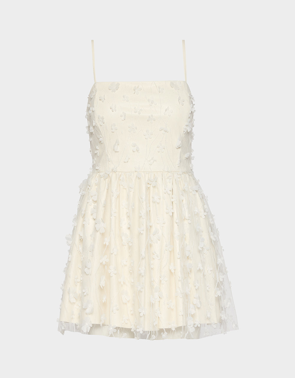 Our PLEATHER FLORAL MINI OFF WHITE?combines playful charm with edgy details. Featuring delicate 3D flower embellishments and thin spaghetti straps, its flowy silhouette moves gracefully with every step. Whether you dress it up with your favorite heels or add a bold touch with combat boots, this pleather floral mini promises a fresh, fun look for the season.