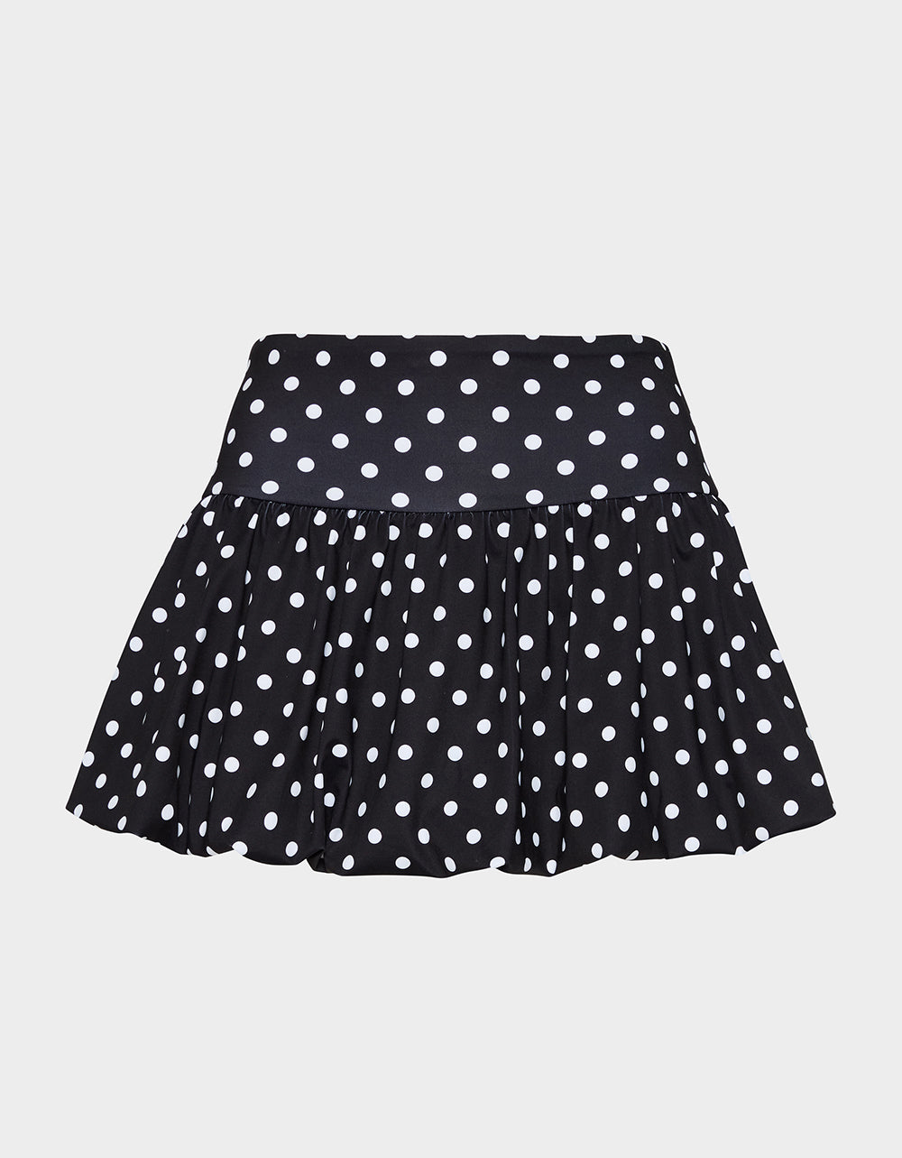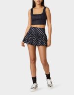Meet your new go-to activewear essential—a polka dot skirt designed to keep up with your dynamic lifestyle. The bubble hem bounces with every move, while the flowing fabric lets you stretch, bend, and groove without restriction. Black multi colorway pairs with everything in your athletic rotation. Go bold, go playful, go you.