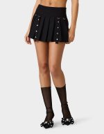 REBEL RIVET PLEATED SKIRT BLACK