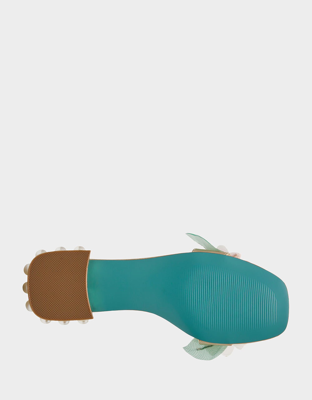 , where delicate florals meet glamorous pearl accents. This embellished beauty features a charming flower strap that wraps across the foot and an unique pearl-adorned heel that catches the light with every step. The modern square toe adds an edge to this design, making it the perfect statement piece for anyone ready to bloom with confidence and style.