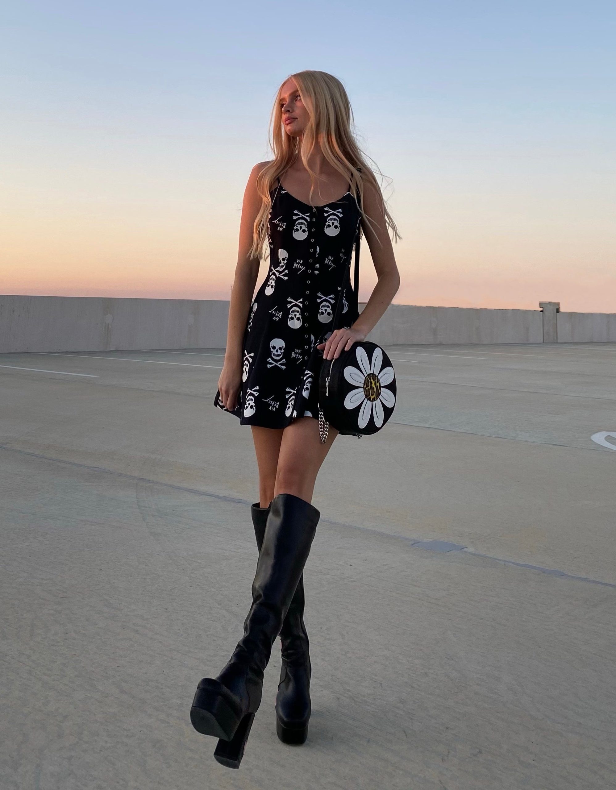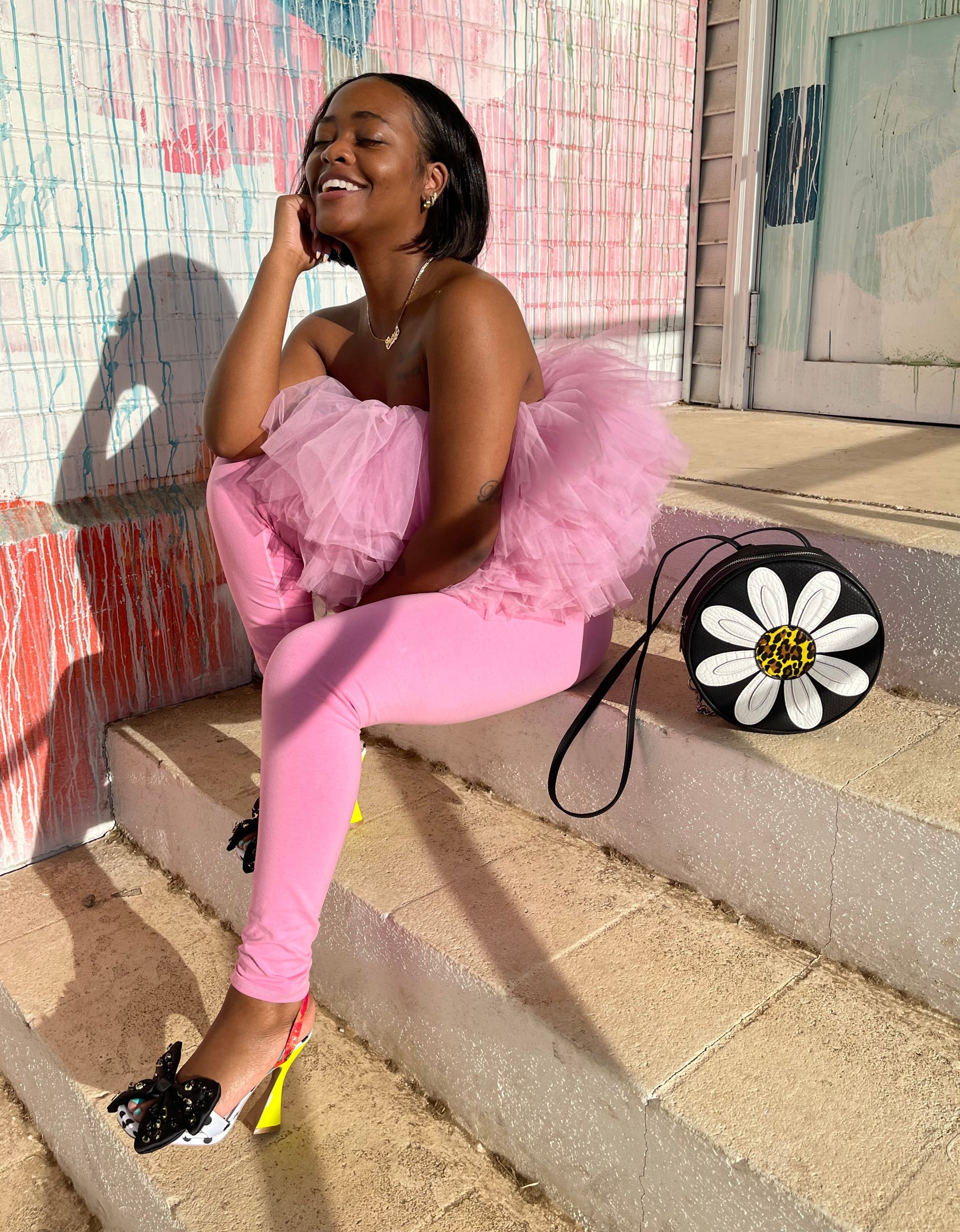 Circle shaped backpack with sunflower motif