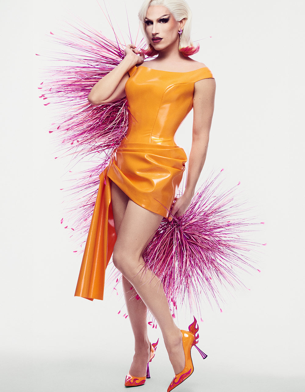 Designed in collaboration with Drag Race Season 18 contestant and longtime Betsey Johnson muse DD Fuego, the Flame Shoes feature a custom fire motif and signature Betsey drama. Available in inclusive sizing up to 13, the heels make their debut alongside her grand entrance—bringing fashion, fire, and fearless self-expression to the main stage.