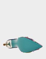 is encrusted with jewels and beading! A rich design is made wearable with a delicate sling back strap and padded footbed.